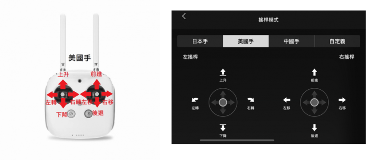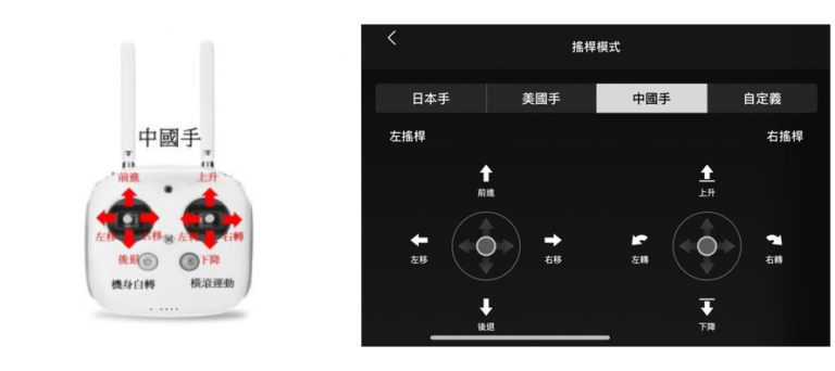 • 特點: 將「前進」與「升降」拆分兩手,早期航模前輩多用此模式,操控細膩度極高。